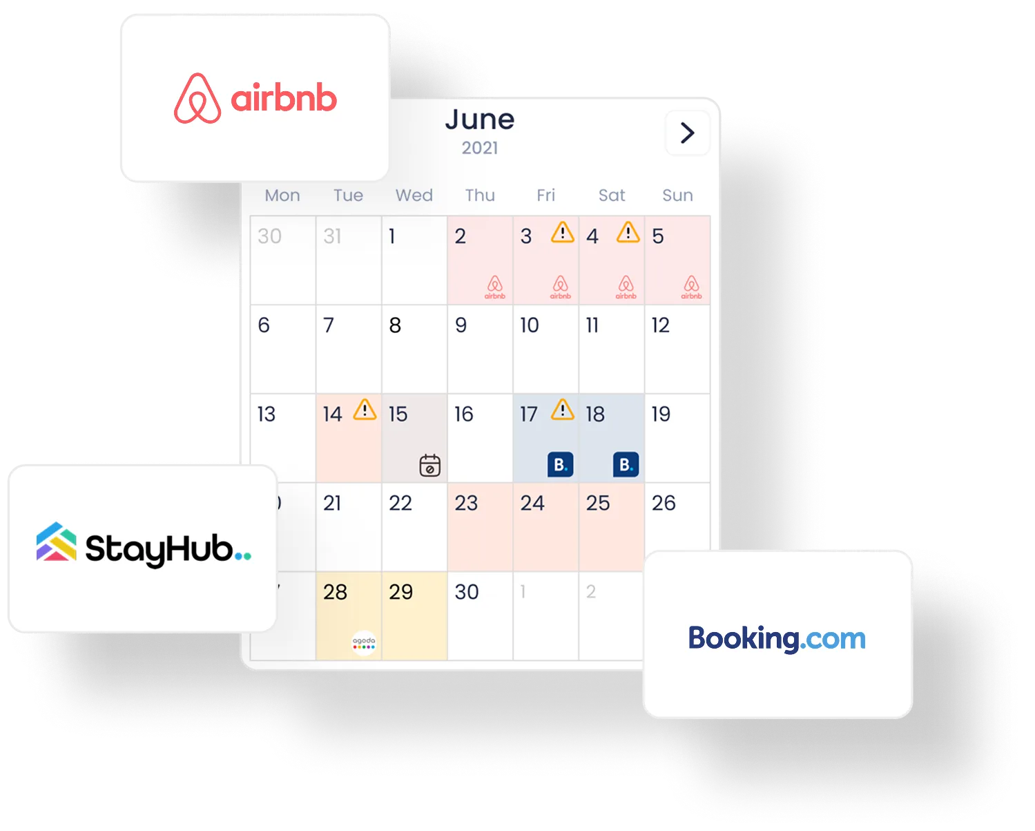 See price, dates, ID status, and availability at a glance. One click updates Airbnb, Booking, and your calendar.